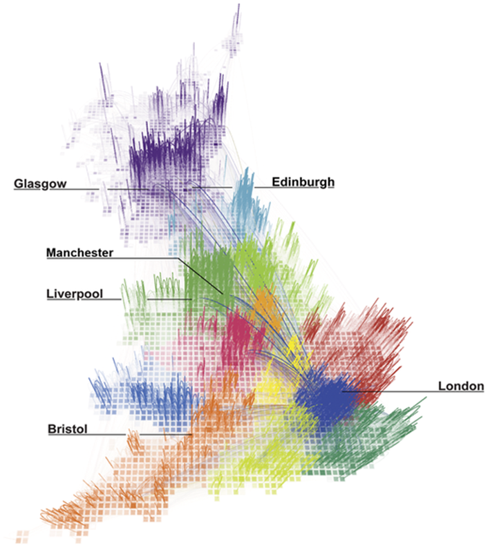Redrawing the Map of Great Britain from a Network of Human Interactions (Ratti et al. 2010)