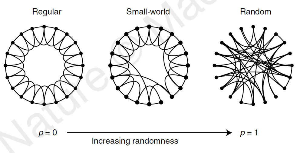A set of intensively interconnected local clusters, which gain global connectivity via a few links, which span the entire network linking distant clusters